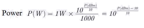 P(W) = 10^(P(dBm)/10) / 1000